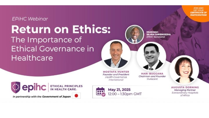 Ethical Principles in Health Care (EPiHC) is a World Bank Group and IFC platform created to help implement clear ethical principles and standards for health care delivery. Founder and President of Health Governance International LLC, Dr. Mostafa Hunter, was one of three speakers on the Return to Ethics webinar, which highlighted how ethical governance accelerates growth, improves access to finance, and mitigates risks. Please find a video recording of the webinar in this link.